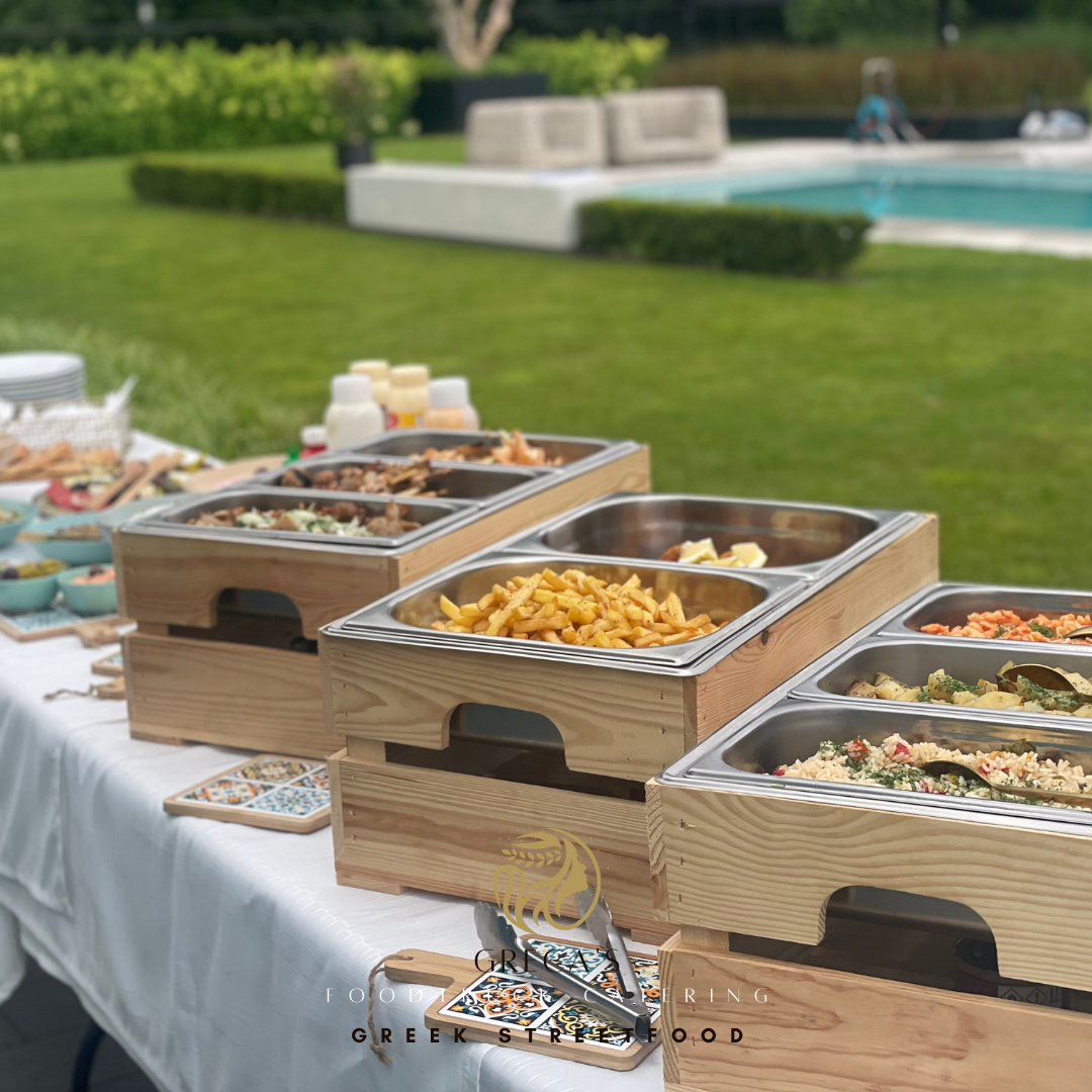 Warme en koude GRIEKSE gerechten en de Griekse gezelligheid terwijl Natasja & team de gehele catering verzorgen.